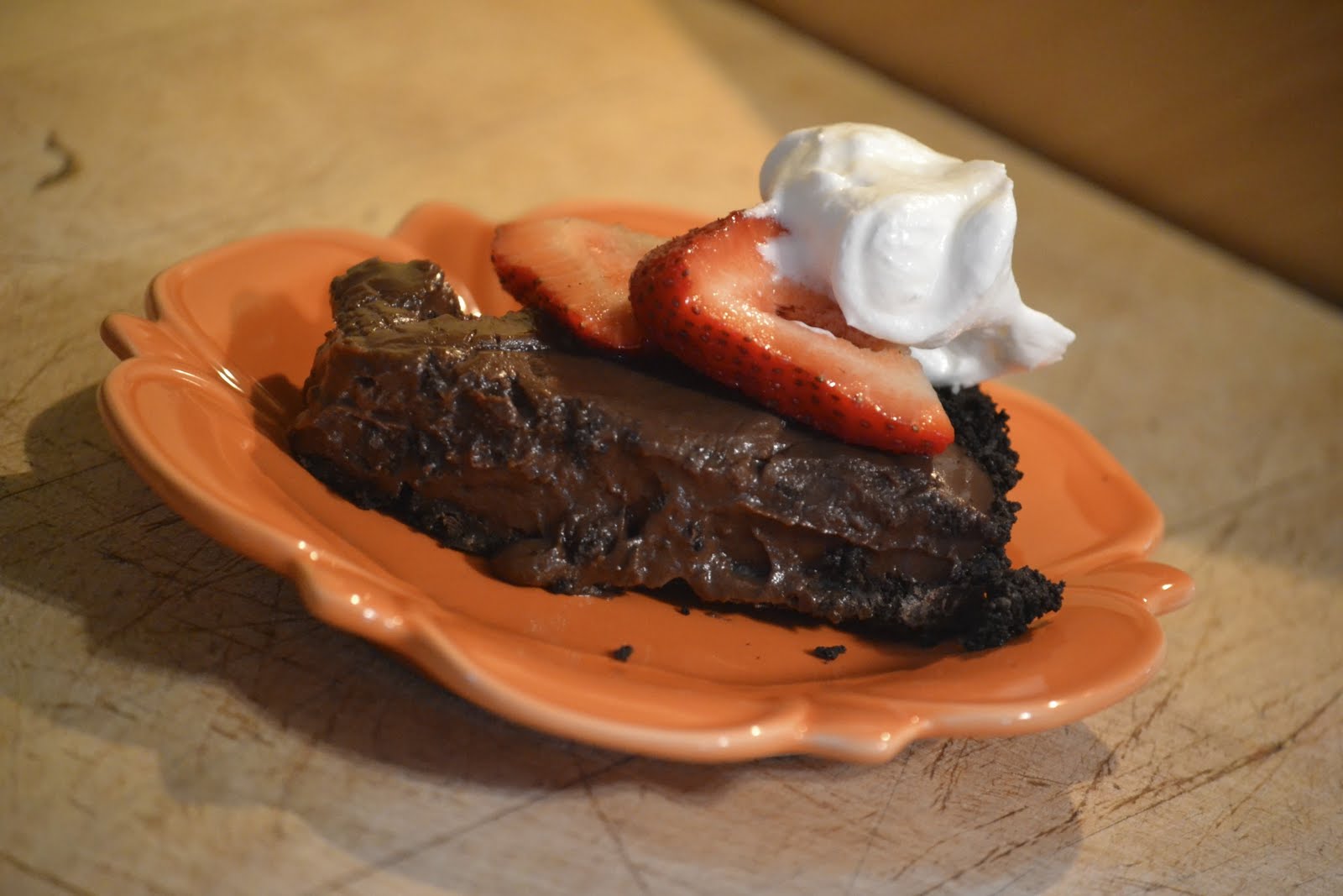 To prepare crust, place wafers in a food processor and process until fine crumbs form. Add melted chocolate and canola oil. Process until blended. Press into the bottom and up the sides of a pie plate. Freeze for 15 minutes.